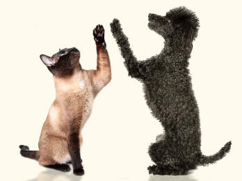 Siamese Cat and Toy Poodle Reveal Elbows & Paws
